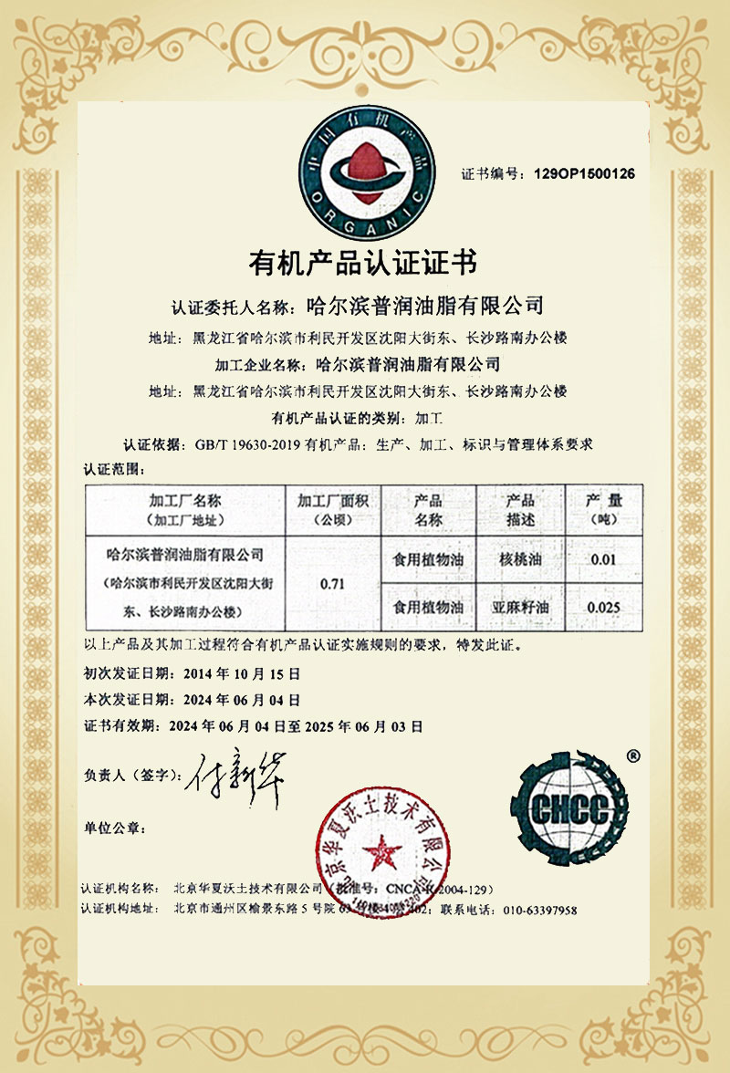 有機(jī)產(chǎn)品認(rèn)證證書(shū)