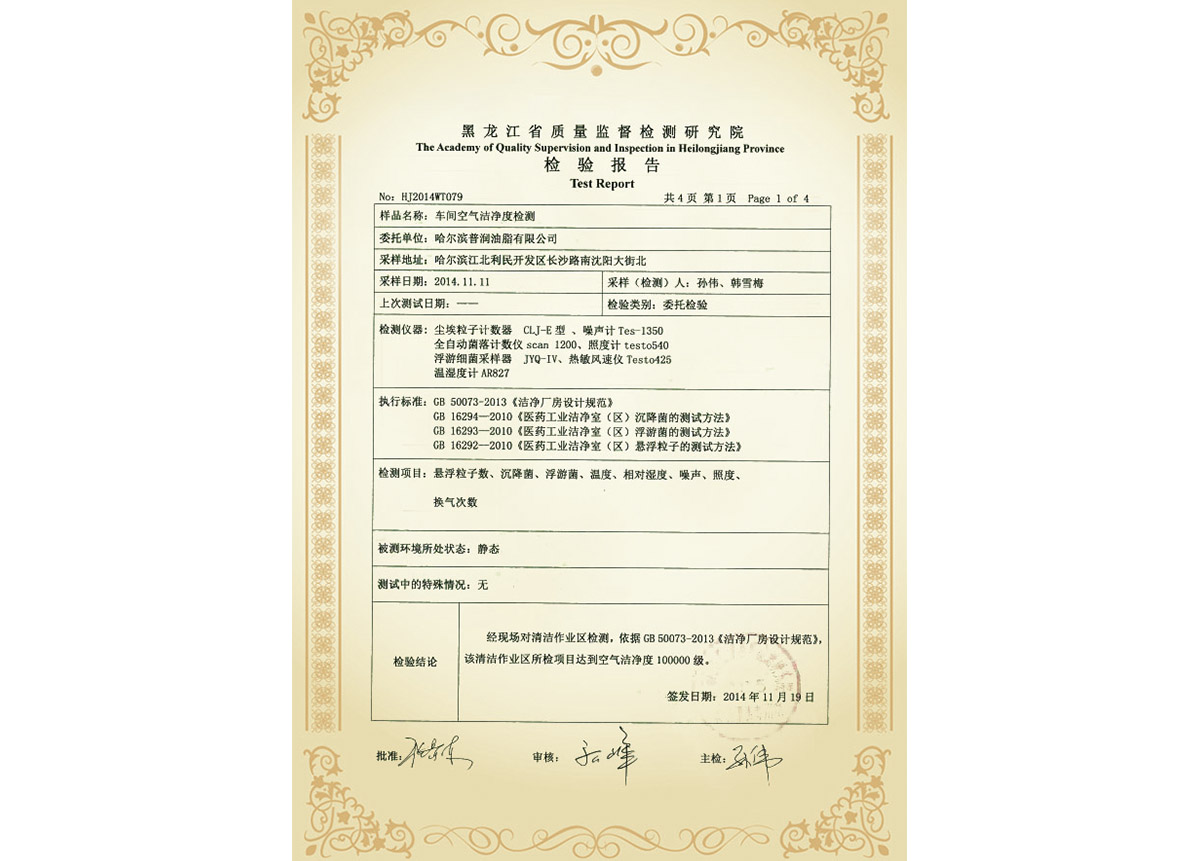 車(chē)間空氣潔凈度檢驗(yàn)報(bào)告